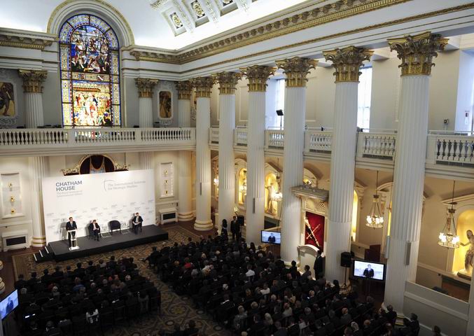 ??? 【英兩家頂級智庫搭臺 傾聽中國總理聲音】18日,李克強在擁有悠久歷史、金碧輝煌的倫敦金融城市長官邸,面向300多位智庫成員發(fā)表了題為《共建包容發(fā)展的美好世界》的演講。皇家國際事務研究所和國際戰(zhàn)略研究所同為全球頂級智庫。此間輿論認為,由兩家研究所共同舉辦同一場演講極為罕見。