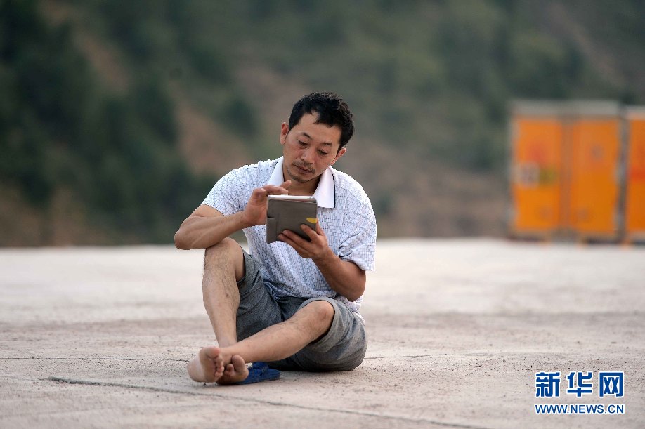 ????7月5日,烏茲別克斯坦安革連至琶布鐵路隧道項目安革連隧道進口西口分部,幾名員工在與家人通電話。(沙達(dá)提 攝)