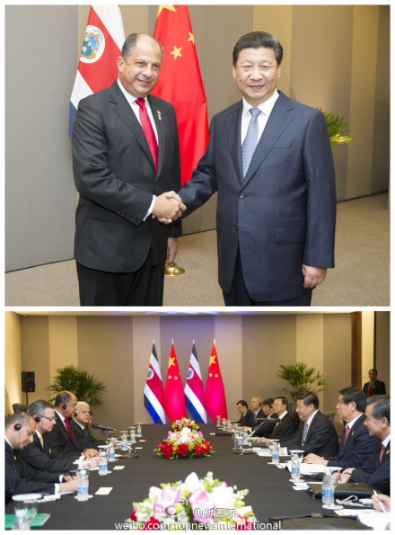 ??? 新華網(wǎng)北京7月17日電 據(jù)新華社“新國際”微博報(bào)道,習(xí)近平主席16日會(huì)見哥斯達(dá)黎加總統(tǒng)索利斯時(shí)說,中哥關(guān)系正如一棵茁壯成長的美洲象耳樹。中方愿繼續(xù)同哥方一道,把政治互信的根扎深,把互利合作的干養(yǎng)壯,使人文交流的葉繁茂,使中哥關(guān)系這棵大樹果實(shí)累累。(攝影:謝環(huán)馳)?