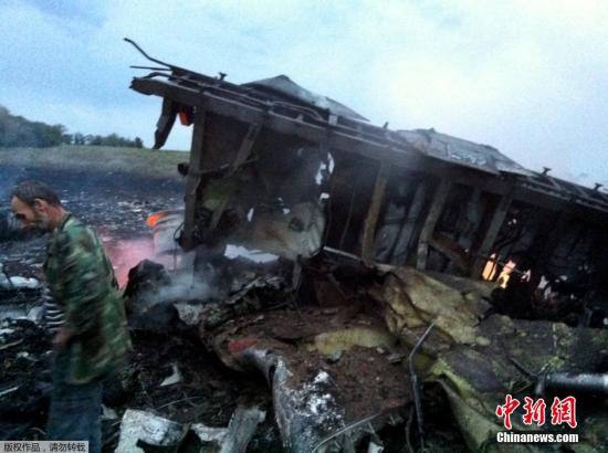 7月17日,據(jù)路透社消息,馬來(lái)西亞一架載有295人的777客機(jī)在烏克蘭靠近俄羅斯邊界墜毀。另?yè)?jù)國(guó)際文傳電訊社消息,墜毀機(jī)型為一架波音777客機(jī),機(jī)載約280名乘客和15個(gè)機(jī)組人員。圖為馬航波音777客機(jī)在頓涅茨克地區(qū)墜毀的現(xiàn)場(chǎng)。