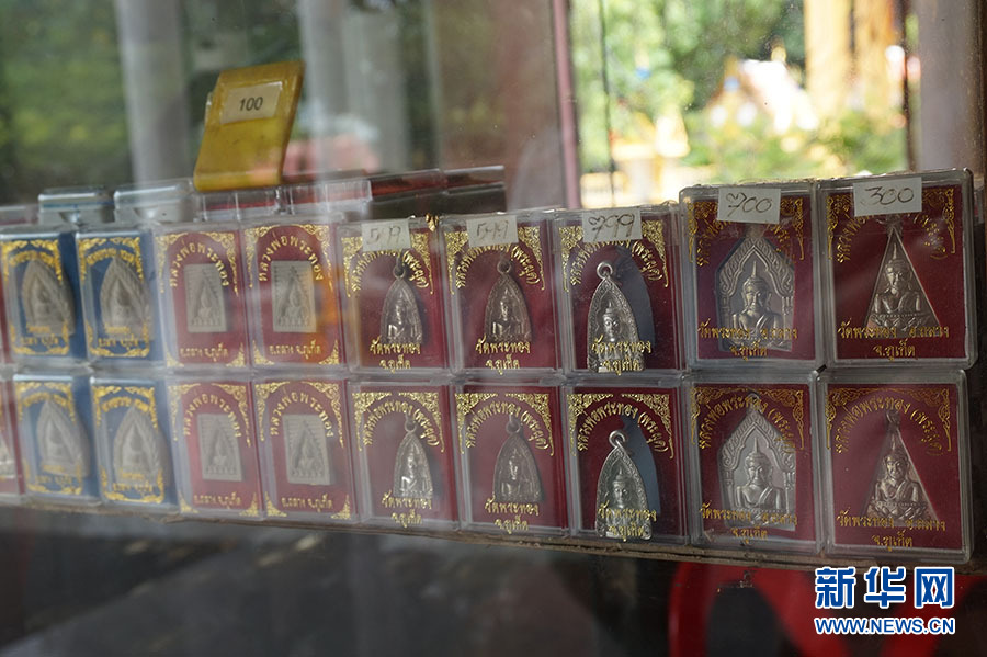 寺廟內(nèi)出售的半身金佛掛飾 新華網(wǎng)記者 楊云燕 攝