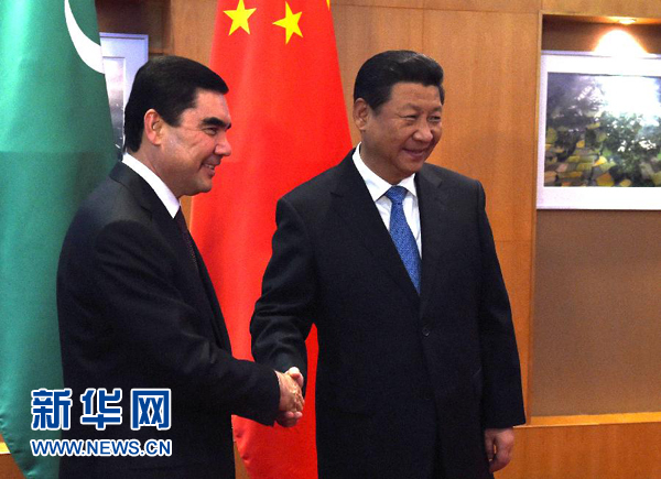 習近平指出,過去一年,我和別爾德穆哈梅多夫總統(tǒng)成功互訪,共同規(guī)劃了中土關(guān)系未來發(fā)展,推動了一系列大項目合作,中土戰(zhàn)略伙伴關(guān)系實現(xiàn)良好開局,兩國已成為合作共贏的利益共同體和守望相助的命運共同體。雙方要繼續(xù)深化能源合作,確保中國-中亞天然氣管道建設和運營,做好復興氣田二期產(chǎn)能建設。同時,雙方要優(yōu)化貿(mào)易結(jié)構(gòu),逐步擴大電力、制造業(yè)、農(nóng)業(yè)等非能源合作,共同推動絲綢之路經(jīng)濟帶建設,對接兩國發(fā)展戰(zhàn)略,拉動交通、通信等領域合作。雙方要加強油氣管道和大型國際活動安保領域合作,共同打擊“三股勢力”。中方支持土方在中國舉辦文化日活動,愿意幫助土方推廣漢語教學,促進人文交流。