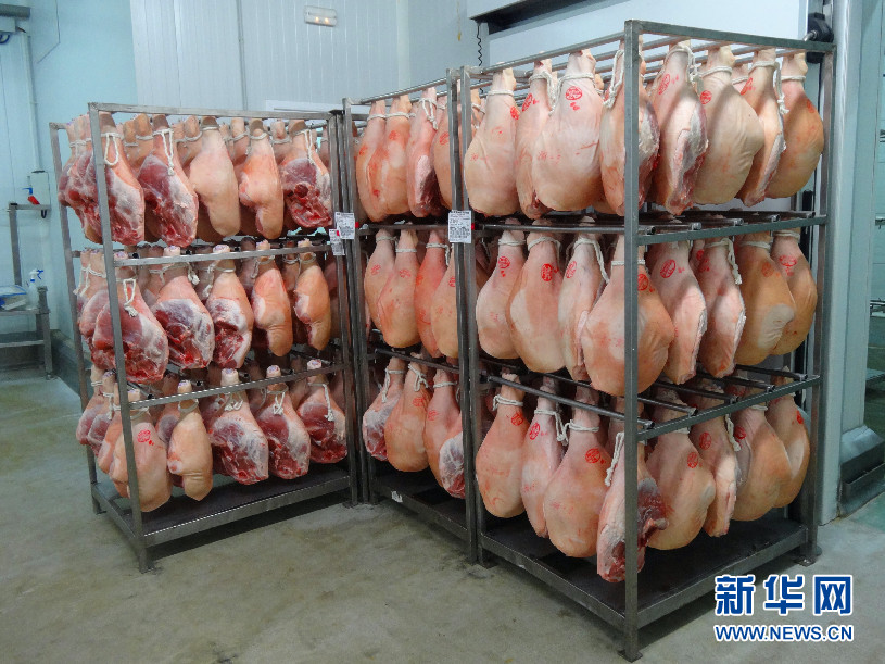 ????“因特珀?duì)柨恕惫镜囊晃回?fù)責(zé)人何塞?拉蒙(Jose Ramon)先生向記者介紹說,為了保證產(chǎn)品的質(zhì)量,根據(jù)歐盟食品安全法規(guī),西班牙生豬的飼料、喂養(yǎng)、處理、配送都會受到嚴(yán)格的監(jiān)控。比如“卡薩德蒙特”公司,送到這里的每條生豬腿都有自己的編號,并且這個編號會跟隨制作火腿的整個過程,這樣最終出現(xiàn)在市場上的每一件火腿產(chǎn)品,都可以追溯其原料來源和加工過程。
