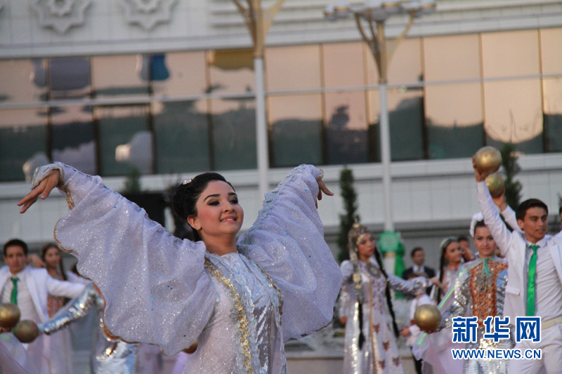 身著節(jié)日盛裝的土庫曼斯坦美女在跳舞 記者 盧敬利攝
