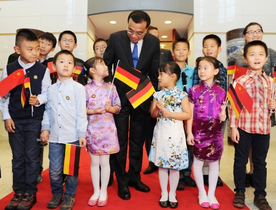 克強(qiáng)總理問了問孩子們的年齡、年級,又跟學(xué)校老師聊起孩子們的學(xué)習(xí)情況,與大家一起合影,鼓勵孩子們“做中德交往的橋梁”。