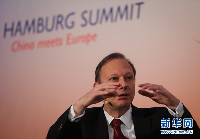 ??? 10月11日,在德國(guó)漢堡舉行的中歐論壇漢堡峰會(huì)上,歐盟委員會(huì)貿(mào)易總司處長(zhǎng)彼得?波茲發(fā)言。中歐論壇漢堡峰會(huì)第六屆會(huì)議11日在德國(guó)漢堡閉幕。本屆峰會(huì)以“中國(guó)與歐洲相遇”為主題。來自中歐政治、經(jīng)濟(jì)和學(xué)術(shù)界的500多位代表聚集在一起,探討中歐經(jīng)貿(mào)合作未來趨勢(shì)、中國(guó)經(jīng)濟(jì)的綠色發(fā)展等重要議題。新華社記者張帆攝