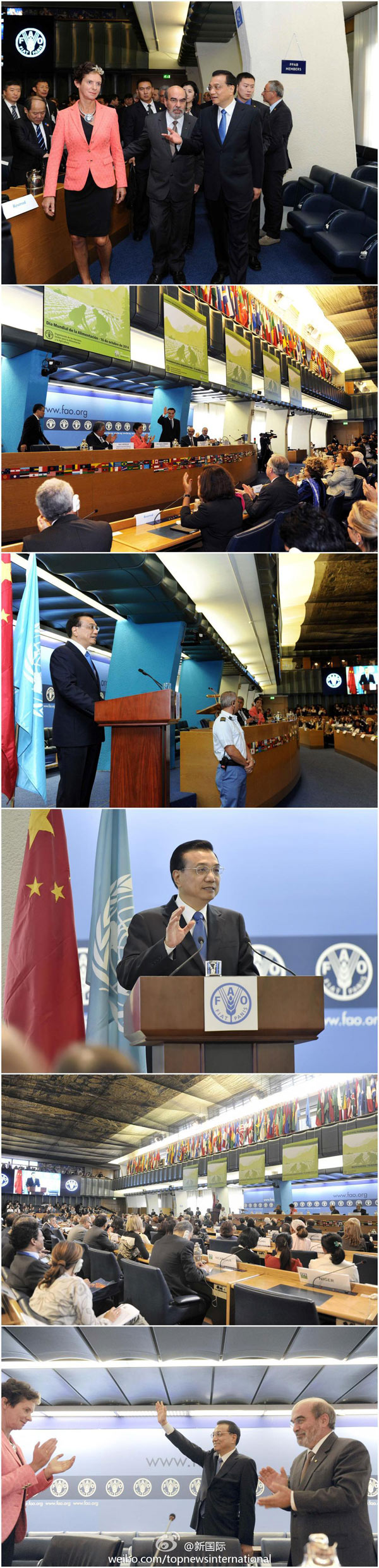 ????應(yīng)聯(lián)合國(guó)糧農(nóng)組織總干事格拉齊亞諾的邀請(qǐng),李克強(qiáng)總理在世界糧食日前夕,來(lái)到位于羅馬的糧農(nóng)組織總部訪(fǎng)問(wèn),與格拉齊亞諾會(huì)見(jiàn)并發(fā)表演講。這是李克強(qiáng)就任總理后首訪(fǎng)聯(lián)合國(guó)組織,也是中國(guó)總理首次訪(fǎng)問(wèn)糧農(nóng)組織總部。【>>>詳細(xì)】