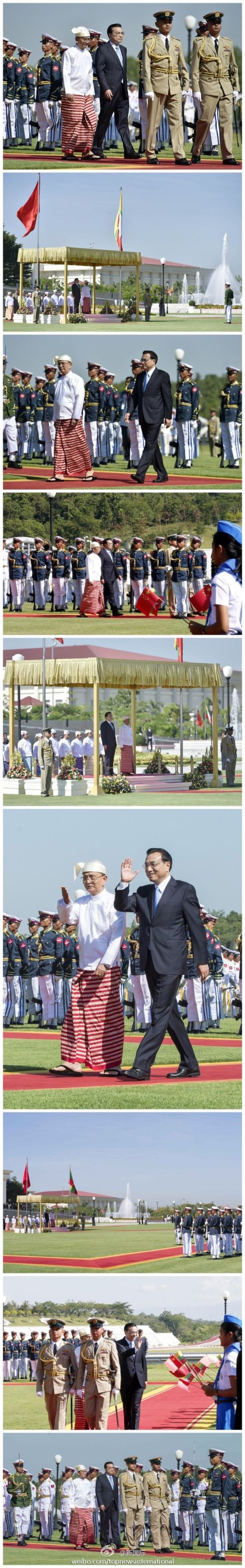 ??? 新華網(wǎng)北京11月14日電 據(jù)新華社“新國(guó)際”微博報(bào)道,緬甸總統(tǒng)吳登盛14日在內(nèi)比都總統(tǒng)府前廣場(chǎng)舉行隆重儀式,歡迎中國(guó)國(guó)務(wù)院總理李克強(qiáng)對(duì)緬甸進(jìn)行正式訪問。這是李克強(qiáng)就任總理以來(lái)首次訪問緬甸。