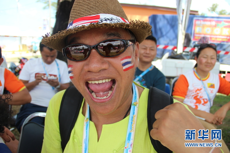 ??? 11月16日,泰國民眾為泰國運(yùn)動(dòng)健兒加油。中國體育代表團(tuán)16日在泰國普吉舉行的第四屆亞洲沙灘運(yùn)動(dòng)會上勇奪2枚金牌和2枚銅牌。當(dāng)天比賽全部結(jié)束時(shí),中國隊(duì)以3金2銀5銅的成績暫列獎(jiǎng)牌榜第五,東道主泰國隊(duì)以9金11銀12銅的成績暫列金牌榜和獎(jiǎng)牌榜第一。新華社發(fā)(塔納攝)