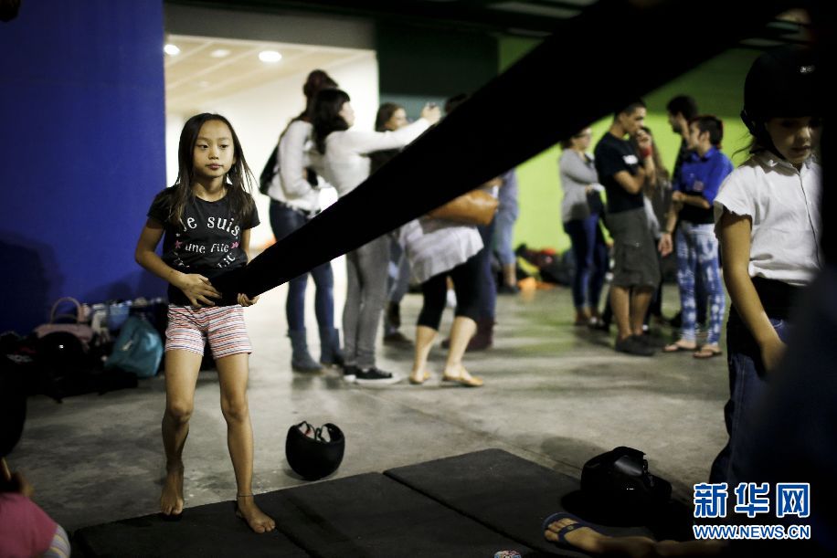 ????訓練開始前,Jana做準備。她正在將一塊黑布纏在腰上。新華社巴塞羅那分社攝影師Pau Barrena 攝