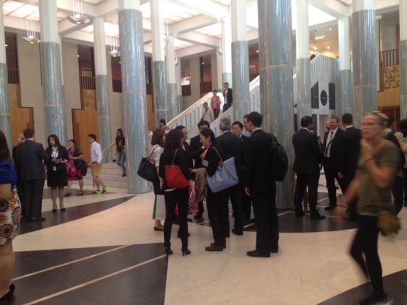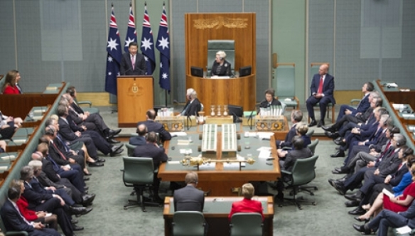 ????這次在澳大利亞,“掌聲響起來”的地方,是堪培拉的標志性建筑——澳聯(lián)邦參眾兩院所在議會大廈的眾議院會議廳。演講的聽眾?自然主要是議員先生和女士們啦,還有陪同出席演講的阿博特總理、帕里參議長、工黨領袖肖滕,以及主持人畢曉普眾議長。