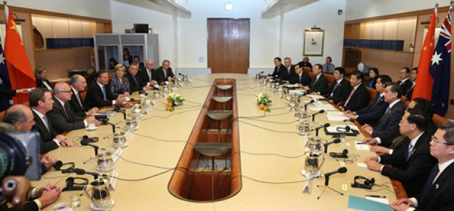 ????【畫外音】這些協(xié)議涉及貿(mào)易、投資、能源礦產(chǎn)、農(nóng)牧業(yè)、基礎設施建設、金融、教育、新能源、海洋極地、氣候變化、旅游等領域,最值得一提的是兩國政府關于實質性結束中澳自由貿(mào)易協(xié)定談判的意向聲明,其他一些協(xié)議的“含金量”也非常高,如加強投資合作的框架協(xié)議等,一些協(xié)議則事關全球性問題,如氣候變化合作諒解備忘錄,還有一些協(xié)議則更加“接地氣”,比如相互承認高等教育學歷和學位的協(xié)議、中澳企業(yè)間農(nóng)業(yè)與食品安全百年合作計劃等。