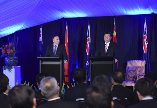 ????圖為習(xí)近平主席和新西蘭總理約翰·基會(huì)談后共同會(huì)見(jiàn)記者(攝影 李學(xué)仁)