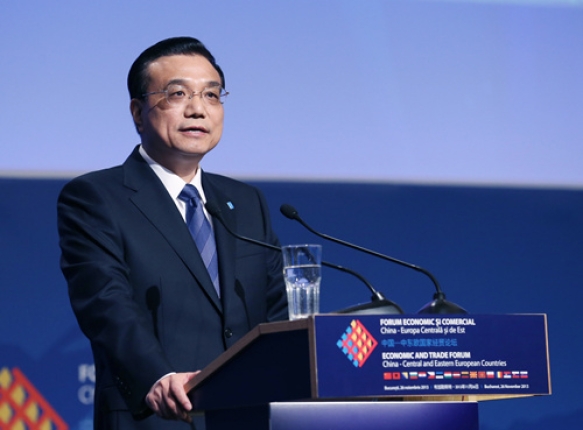 ????圖為2013年11月26日,國務(wù)院總理李克強(qiáng)出席第三屆中國—中東歐國家經(jīng)貿(mào)論壇并致辭。當(dāng)天,李克強(qiáng)在布加勒斯特與羅馬尼亞等13個中東歐國家總理共同出席第三屆中國—中東歐國家經(jīng)貿(mào)論壇并致辭。 新華社記者姚大偉攝