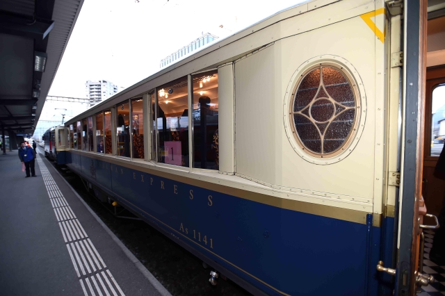 前往達(dá)沃斯通常乘坐的紅色窄軌小火車很有特色??藦?qiáng)總理此次乘坐的專列是瑞方鐵路公司專門用于租借的,充當(dāng)過不少國(guó)家領(lǐng)導(dǎo)人的專列,顏色不同于普通小火車的紅色,而是藍(lán)白配色的。