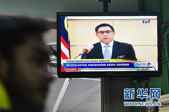 ????1月29日,在馬來西亞吉隆坡,電視直播馬來西亞民航局局長(zhǎng)愛茲哈爾丁發(fā)表聲明。馬來西亞民航局當(dāng)日宣布,馬來西亞航空公司MH370航班失事,推定機(jī)上全部239名乘客及機(jī)組成員已遇難。 新華社發(fā)(張紋綜攝)