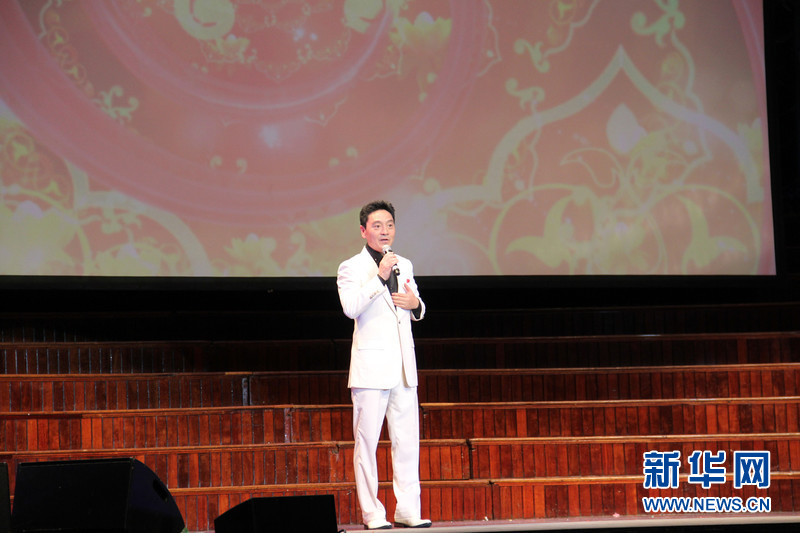 ??????? 2月25日,由中國國務(wù)院僑辦和中國海外交流協(xié)會聯(lián)合主辦的“文化中國·四海同春”在悉尼舉辦大洋洲團的首場演出,歌手成方圓、中國好聲音學員李維、周深等國內(nèi)知名表演者和中澳藝術(shù)團體為當?shù)厝A僑華人送來新春祝福。圖為著名男高音歌唱家唐彪為現(xiàn)場觀眾獻唱《牡丹之歌》。新華社記者趙小娜攝