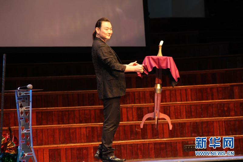 ??????? 2月25日,由中國國務(wù)院僑辦和中國海外交流協(xié)會聯(lián)合主辦的“文化中國·四海同春”在悉尼舉辦大洋洲團的首場演出,歌手成方圓、中國好聲音學員李維、周深等國內(nèi)知名表演者和中澳藝術(shù)團體為當?shù)厝A僑華人送來新春祝福。圖為中國雜技團著名青年魔術(shù)師李寧表演魔術(shù)。新華社記者趙小娜攝