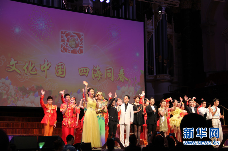 ???????? 2月25日,由中國(guó)國(guó)務(wù)院僑辦和中國(guó)海外交流協(xié)會(huì)聯(lián)合主辦的“文化中國(guó)·四海同春”在悉尼舉辦大洋洲團(tuán)的首場(chǎng)演出,歌手成方圓、中國(guó)好聲音學(xué)員李維、周深等國(guó)內(nèi)知名表演者和中澳藝術(shù)團(tuán)體為當(dāng)?shù)厝A僑華人送來(lái)新春祝福。圖為當(dāng)晚所有演員合影謝幕。新華社記者趙小娜攝