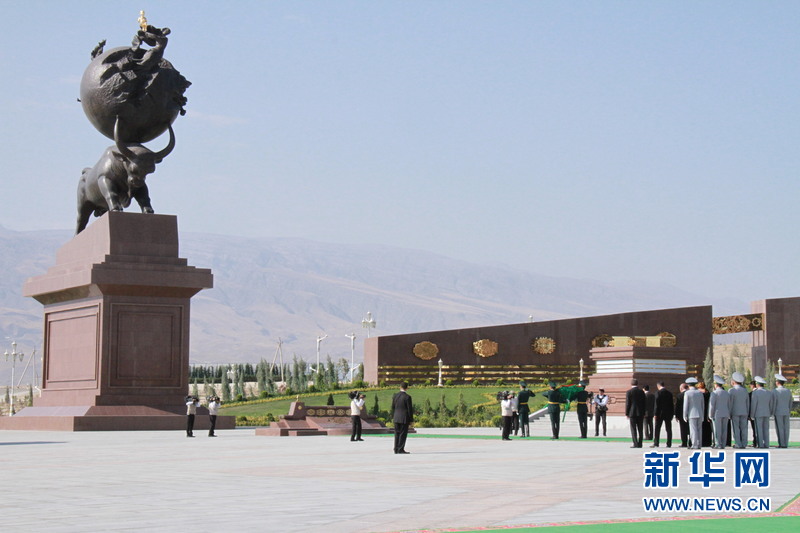 土庫曼斯坦總統(tǒng)和內(nèi)閣成員向地震紀(jì)念碑獻(xiàn)花。(新華網(wǎng)記者 盧敬利 攝)