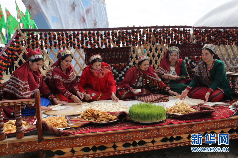 ????以往過著游牧和半游牧生活的人們在冰雪消融、牲畜產(chǎn)仔的時節(jié),都會以這一傳統(tǒng)佳節(jié)歡慶新生活。 21日上午,在阿什哈巴德以東40來公里處專門為節(jié)日搭建的場地上,土庫曼斯坦內(nèi)閣、外交使節(jié)、民眾和學生參加了隆重的慶祝活動?;顒又校嗄昴信?、學齡前兒童載歌載舞,民眾和藝術(shù)家展示傳統(tǒng)的編織和手工藝術(shù),青年男女高高地蕩起秋千,汗血寶馬進行馬技表演,土庫曼咬狼犬、羊群和駱駝或圍在欄子里,或被主人牽在手中,展現(xiàn)出游牧民族的生活景象。