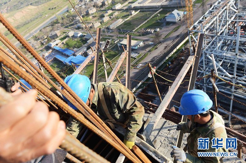 ????烏茲別克斯坦安格連(市)電廠煙囪施工現(xiàn)場(chǎng),來自中國(guó)能建集團(tuán)黑龍江省火電第一工程有限公司的工人在作業(yè)。新華網(wǎng)發(fā) 記者沙達(dá)提 攝