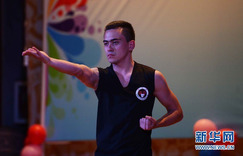 4月28日,在烏內(nèi)務(wù)部文化宮禮堂,來自烏茲別克斯坦世界語言大學的DJAVDAT(中文名:張睿)在參加比賽。新華網(wǎng)記者 沙達提攝