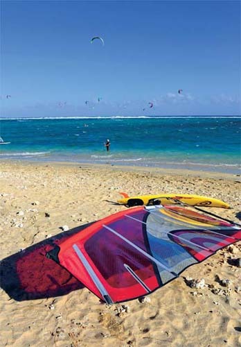 我們在留尼旺的幾天時間里風(fēng)浪都比較大,不過來到海邊卻發(fā)現(xiàn)海灘上依舊人聲鼎沸,原來好動的法國人和一些歐美游客正利用風(fēng)浪玩起了刺激的海上運動。幾米高的海浪中早已有了十多名沖浪好手相繼嘗試挑戰(zhàn),雖然他們中的大部分只是業(yè)余愛好,并非職業(yè)沖浪選手,不過一招一式也是頗為認(rèn)真??拷0陡浇臏\水區(qū)則更多是風(fēng)帆、摩托艇、皮劃艇、海浪滑板等各項水上運動的世界,對于他們來說,大風(fēng)就是運動的動力,海水就是運動的場地。一般島上的家庭都會趁著周末舉家開車來到海邊,喜歡玩水的玩水,而其他家庭成員則在沙灘上聚餐或者聊天,如此融入大自然真是瀟灑。