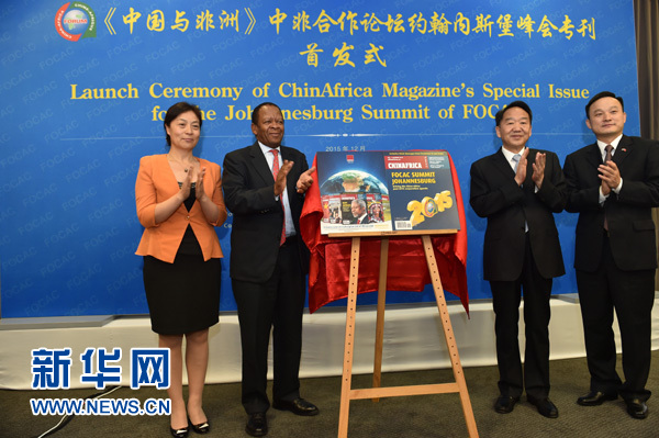 12月3日在南非約翰內(nèi)斯堡拍攝的《中國(guó)與非洲》雜志約翰內(nèi)斯堡峰會(huì)??装l(fā)式現(xiàn)場(chǎng)。新華社記者 孫瑞博攝