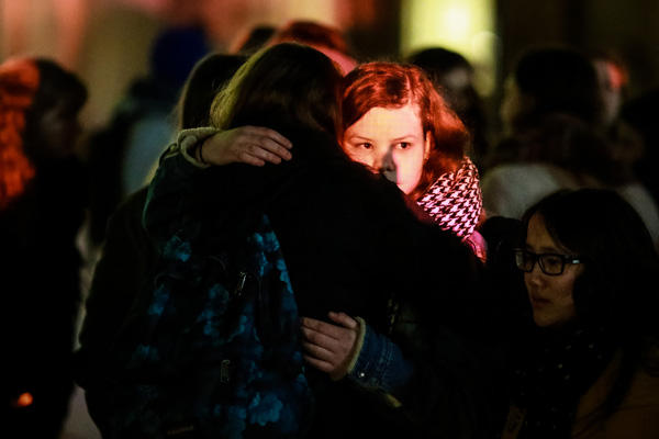 3月22日,在比利時首都布魯塞爾,兩名現(xiàn)場目擊者在接受采訪時潸然淚下。新華社記者龔兵攝