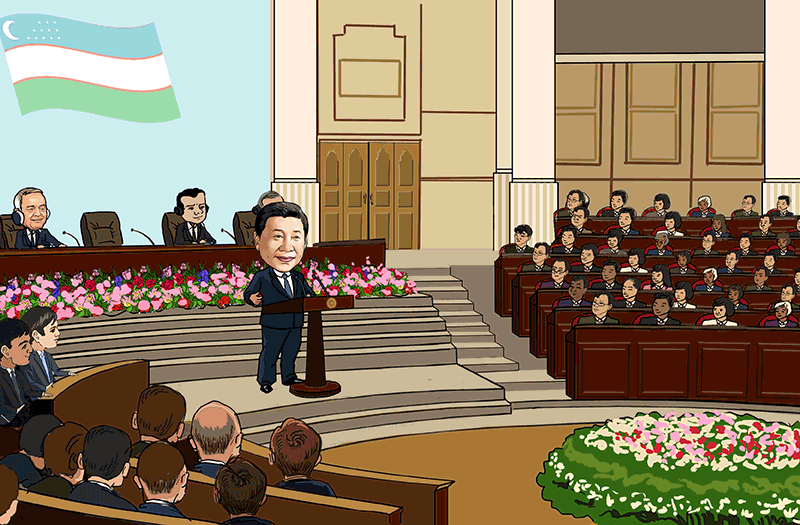 6月22日,正在烏茲別克斯坦訪問的國家主席習(xí)近平在塔什干烏茲別克斯坦最高會議立法院發(fā)表題為《攜手共創(chuàng)絲綢之路新輝煌》的重要演講,提出構(gòu)建互利合作網(wǎng)絡(luò)、共創(chuàng)新型合作模式、打造多元合作平臺、推進(jìn)重點(diǎn)領(lǐng)域項(xiàng)目的新主張,為推動“一帶一路”向更高水平、更廣空間邁進(jìn)指明了方向。當(dāng)天,習(xí)主席和卡里莫夫總統(tǒng)在塔什干共同出席“安格連-帕普”鐵路隧道的通車視頻連線活動。