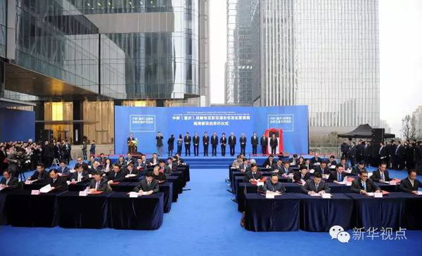 (1月8日,中新重慶戰(zhàn)略性互聯(lián)互通示范項目管理局揭牌,首批合作項目簽約。新華社記者唐奕 攝)