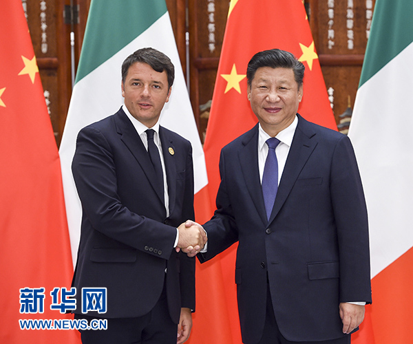 習(xí)近平歡迎倫齊來華出席二十國集團(tuán)領(lǐng)導(dǎo)人杭州峰會(huì)。習(xí)近平指出,近年來,中意關(guān)系取得長足進(jìn)步,雙方秉承相互尊重、互利共贏精神,深化政治互信,擴(kuò)大務(wù)實(shí)合作,使兩國人民獲得實(shí)實(shí)在在的利益。中方愿同意方攜手努力,不斷推進(jìn)兩國全面戰(zhàn)略伙伴關(guān)系向前發(fā)展。我們要堅(jiān)持兩國戰(zhàn)略互信大方向,尊重彼此核心利益和重大關(guān)切,密切兩國政府、議會(huì)、政黨交流合作。要堅(jiān)持互利共贏原則,優(yōu)勢(shì)互補(bǔ),實(shí)現(xiàn)共同發(fā)展。中方歡迎意方積極參與“一帶一路”建設(shè)。我們要以古老文明為依托,密切人文交流,深化傳統(tǒng)友誼。要加強(qiáng)在國際和地區(qū)事務(wù)中的協(xié)調(diào)和配合,努力構(gòu)建以合作共贏為核心的新型國際關(guān)系。要將中歐和平、增長、改革、文明四大伙伴關(guān)系落到實(shí)處,共同維護(hù)中歐關(guān)系良好發(fā)展勢(shì)頭。