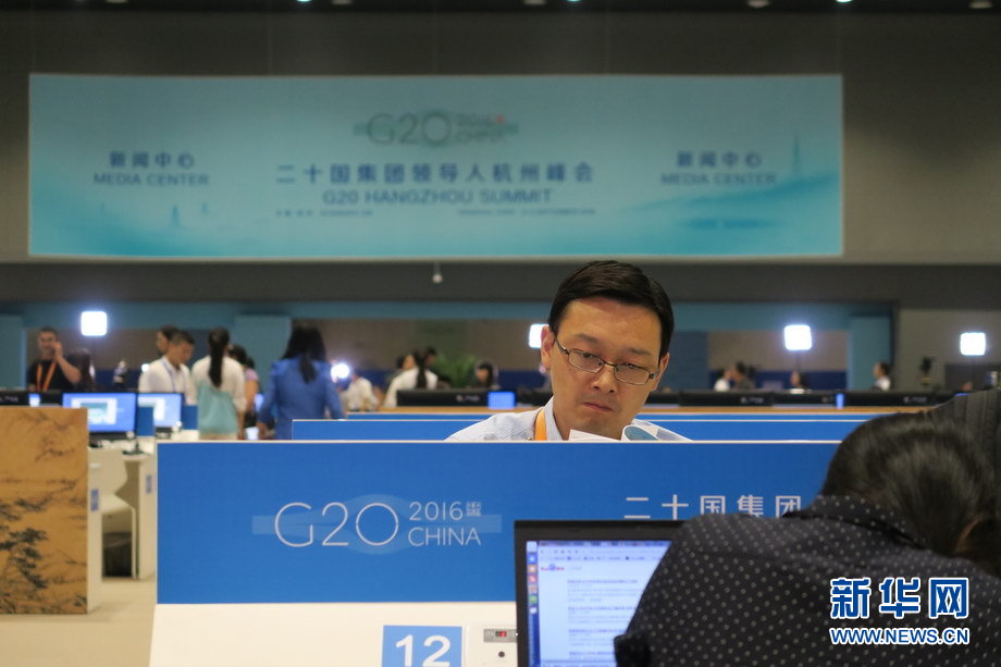 二十國集團(tuán)領(lǐng)導(dǎo)人第十一次峰會(huì)9月4日至5日在浙江杭州舉行。峰會(huì)新聞中心一派繁忙景象,境內(nèi)外各路媒體記者使出“洪荒之力”,實(shí)時(shí)報(bào)道峰會(huì)動(dòng)態(tài)。新華網(wǎng)記者 陳競(jìng)超 攝