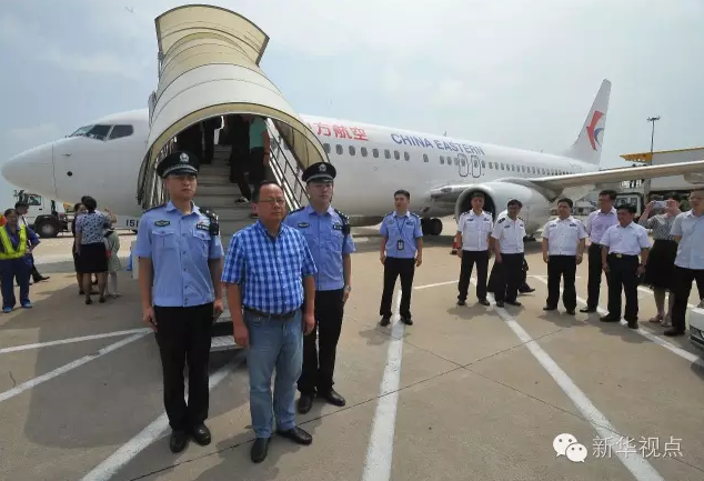 2016年7月13日,在武漢天河機(jī)場(chǎng),“百名紅通人員”朱海平從美國(guó)回國(guó)投案自首。標(biāo)志著“百名紅通人員”已有三分之一落網(wǎng)。新華社發(fā)(楊平攝)