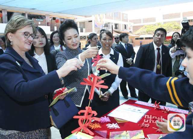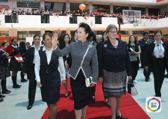 ??? 彭麗媛抵達(dá)時,秘魯總統(tǒng)夫人蘭格和學(xué)校校長在下車處迎接,校長為彭麗媛獻(xiàn)上鮮花。若望二十三世秘中學(xué)校創(chuàng)辦于1962年,是從幼兒園到中學(xué)教育的全日制學(xué)校,也是秘魯乃至南美洲最具影響的華文學(xué)校之一。