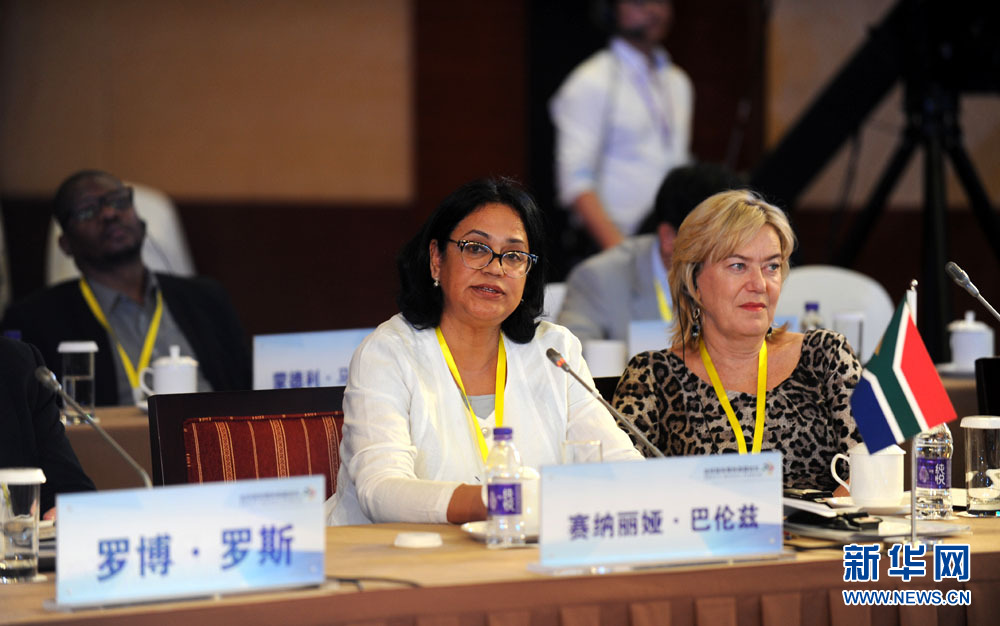 金磚國家媒體高端論壇開幕式6月8日在北京舉行。圖為論壇共同主席、南非獨立傳媒集團幕僚長賽納麗婭·巴倫茲女士發(fā)表演講。 新華網(wǎng) 孫韜 攝
