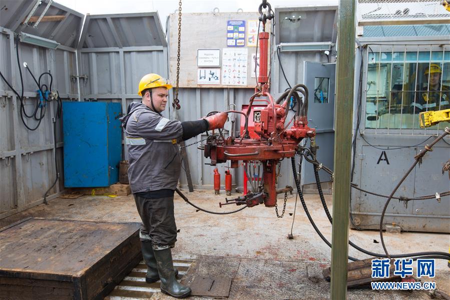 6月2日,在俄羅斯伊熱夫斯克,工人在UDM項(xiàng)目鉆井現(xiàn)場作業(yè)。新華社記者白雪騏攝
