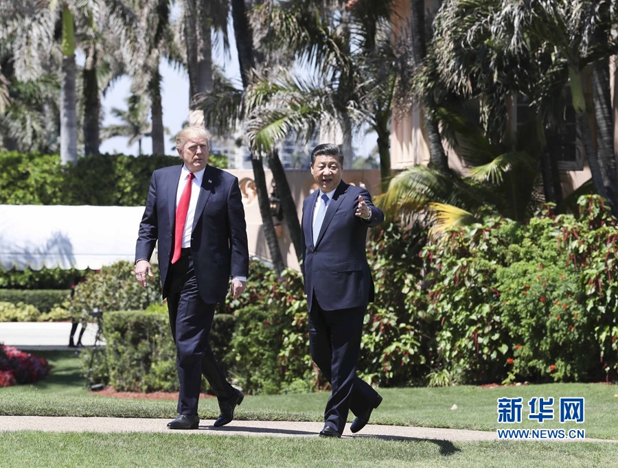 2017年4月7日,國家主席習(xí)近平在美國佛羅里達州海湖莊園同美國總統(tǒng)特朗普舉行中美元首第二場正式會晤。會晤后,習(xí)近平同特朗普到秀麗宜人的海湖莊園中散步,在輕松友好的氣氛中繼續(xù)就兩國友好合作進行討論。 新華社記者 蘭紅光 攝