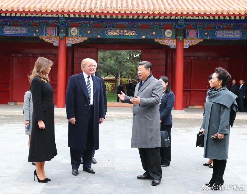 新華網(wǎng)北京11月8日電? 國家主席習近平和夫人彭麗媛11月8日陪同來華進行國事訪問的美國總統(tǒng)特朗普和夫人梅拉尼婭參觀故宮博物院。(攝影:新華社記者蘭紅光、劉衛(wèi)兵、謝環(huán)馳 據(jù)新華社“新華視點”微博報道)