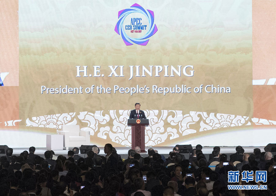 2017年亞太經(jīng)合組織工商領(lǐng)導(dǎo)人峰會10日在越南峴港舉行。國家主席習(xí)近平發(fā)表題為《抓住世界經(jīng)濟(jì)轉(zhuǎn)型機(jī)遇 謀求亞太更大發(fā)展》的主旨演講。