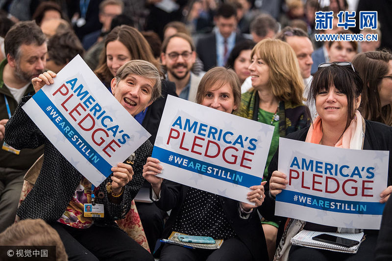 當?shù)貢r間2017年11月11日,德國波恩,波恩氣候大會召開,“美國會館”內(nèi)景。雖然美國宣布退出了《巴黎協(xié)定》,但美國氣候談判代表仍出席了波恩的會議。美國除聯(lián)邦外的各級政府均派代表參加波恩會議,且主要目的就是表明他們?nèi)詫⒅铝τ趦冬F(xiàn)美國在巴黎做出的承諾。在美國國內(nèi),成千上萬的市長、州長、部落首領、企業(yè)高管以及普通美國人都在努力降低溫室氣體排放。這個名為“我們?nèi)栽趫允兀╓e Are Still In)”的聯(lián)盟的成員代表了美國一半以上的人口以及54%的經(jīng)濟產(chǎn)出。“我們?nèi)栽趫允亍保?We Are Still In)、“美國氣候聯(lián)盟”、“氣候市長”(Climate Mayors)和其它諸多計劃向全世界傳遞了這樣一個信息,即美國仍然有很多人正致力于擁有宏偉目標的氣候行動之中,而“美國的承諾”(America’s Pledge)正在尋求如何量化并傳播這些承諾。(圖片來源:視覺中國)