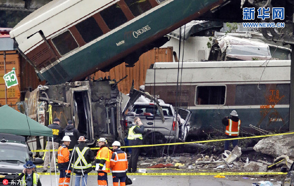 美國有線電視新聞網(wǎng)報(bào)道,由西雅圖開往波特蘭的501次列車18日7時(shí)40分左右在杜邦脫軌,事發(fā)地位于塔科馬以南大約30公里。列車14節(jié)車廂中13節(jié)脫軌,其中數(shù)節(jié)沖出高架橋,墜落在5號州際公路路面,場面一片混亂。