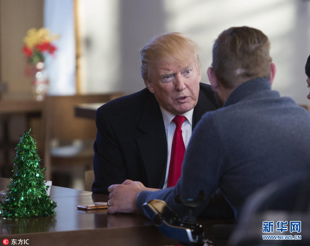 當(dāng)?shù)貢r間21日,美國馬里蘭州,美國總統(tǒng)特朗普訪問沃爾特-里德國家軍事醫(yī)療中心,慰問受傷士兵和家屬,并與退伍的海軍陸戰(zhàn)隊(duì)中士John Peck交談。