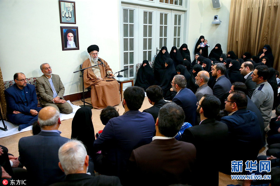 1月2日,伊朗德黑蘭,伊朗最高領(lǐng)袖哈梅內(nèi)伊?xí)娨晾恃车勒呒胰?,并在?huì)面上發(fā)表講話。據(jù)媒體報(bào)道,哈梅內(nèi)伊稱國(guó)內(nèi)爆發(fā)的抗議活動(dòng)是由外國(guó)勢(shì)力操控。他表示:“近日,伊朗的敵人向這些鬧事者們提供著金錢、武器和政治的支持,以讓他們來傷害伊朗”。(圖片來源:東方IC)