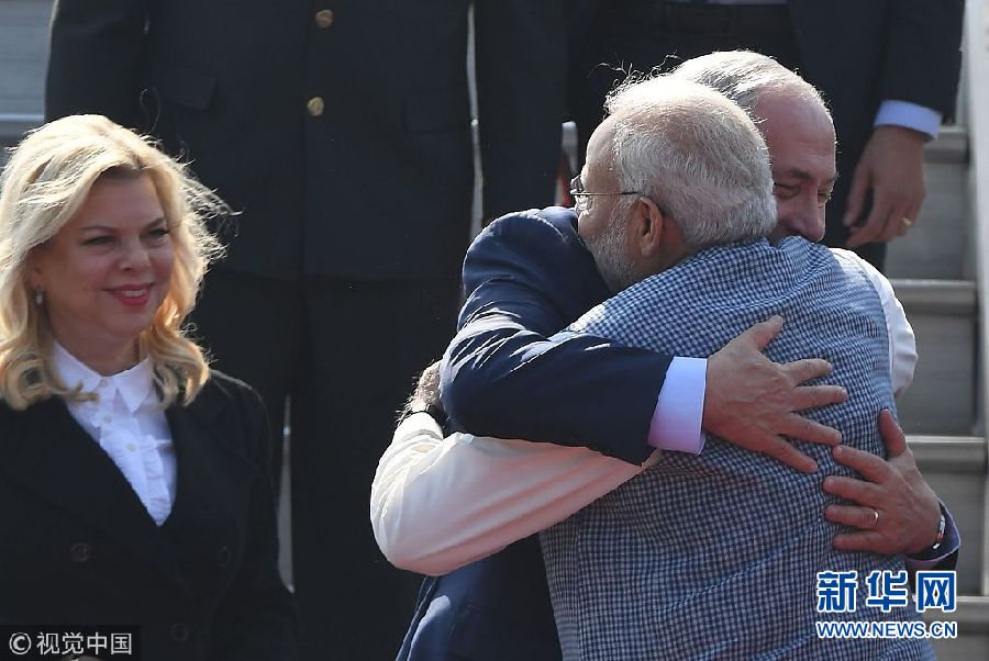 當(dāng)?shù)貢r間1月14日,印度新德里,以色列總理內(nèi)塔尼亞胡抵達(dá)印度展開訪問。(圖片來源:視覺中國)