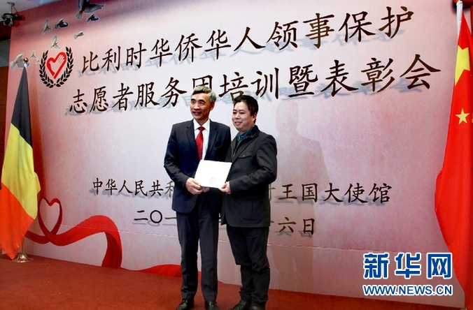 新華網(wǎng)布魯塞爾1月16日專(zhuān)電(記者潘革平)中國(guó)駐比利時(shí)大使館16日在布魯塞爾舉行隆重表彰儀式,對(duì)多年來(lái)在領(lǐng)事保護(hù)領(lǐng)域表現(xiàn)突出的21名領(lǐng)保志愿者予以表彰,其中包括由比利時(shí)中餐業(yè)聯(lián)合會(huì)會(huì)長(zhǎng)楊丐鏡牽頭、去年9月協(xié)助大使館成功解決300多名中國(guó)游客因航空公司突然倒閉而滯留比利時(shí)列日機(jī)場(chǎng)問(wèn)題的12名志愿者。