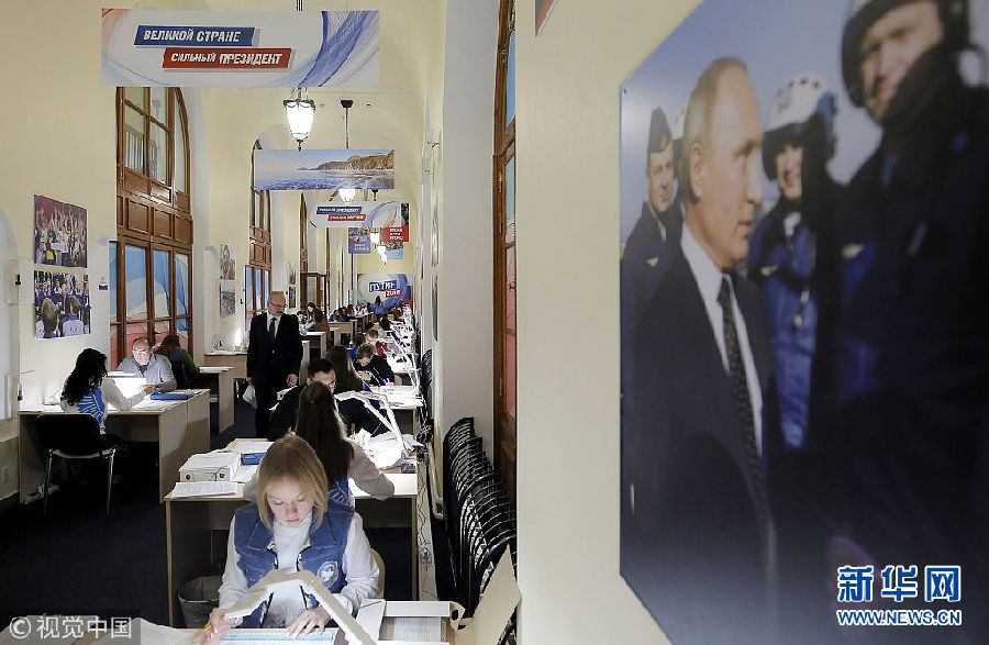 當(dāng)?shù)貢r(shí)間2018年1月17日,俄羅斯莫斯科,俄羅斯總統(tǒng)普京大選競(jìng)選總部的志愿者核查收集到的支持普京參選的簽名。(圖片來(lái)源:視覺中國(guó))