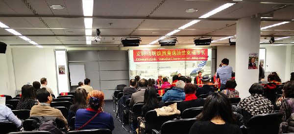 當?shù)貢r間20日下午,近百名旅居德國法蘭克福的華人在德國法蘭克福機場舉行會議,為首位競選法蘭克福市市長的德國華人楊明先生吶喊助威,組織選票。