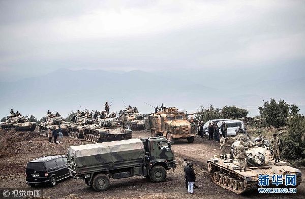 土耳其總統(tǒng)埃爾多安20日宣布,土耳其軍隊已經(jīng)開始對敘利亞西北部與土接壤的阿夫林地區(qū)發(fā)動軍事行動,以打擊當?shù)氐膸鞝柕挛溲b。2018-01-21 17:57:02
